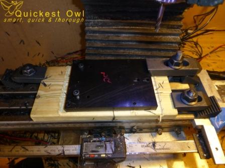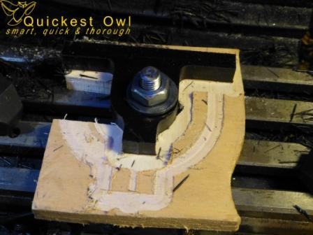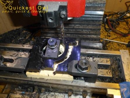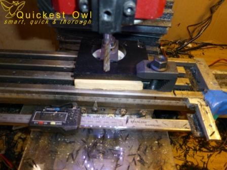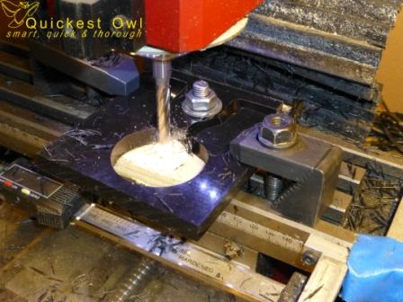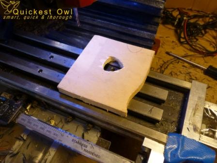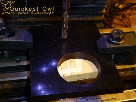 במחשבה קדימה על המשך דפינת המחבר העליון במהלך ייצורו , יצרתי קדח בפלטת עץ אשר תמוקם תחת פלטת הדלרין , השימוש בקדח נועד לדפינת המחבר העליון בזמן כרסומו ההיקפי.
