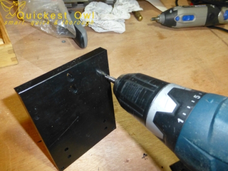 בשלב הבא קדחתי דרך הזוית אל תוך קופסת ההפעלה בעדינות! בכדי לא לפגוע בחוטים אשר בתוך קופסת ההפעלה.