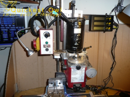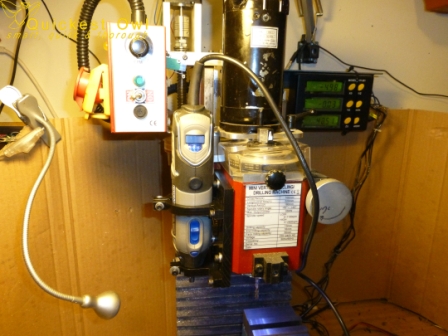 במהלך המרת הכרסומת שלי ל CNC הקפדתי לשמור על האופציה להחזיר את הכרסומת למצב הראשוני ולתפקוד רגיל ככרסומת קונבנציונאלית , ולכן בניגוד לחיבורי רוטרים אחרים אשר ראיתי ברשת , אני בוחר לחבר את ה Dremel בצידו השמאלי של ראש הכרסומת , במקום בו בדרך כלל מצוי מפסק ההפעלה.