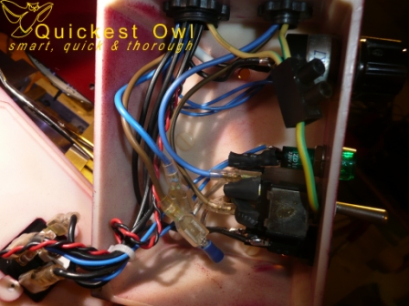 נפתח את קופסת המפסק , וננתק את שלושת הברגים הללו , כך שקופסת המפסק תנותק מראש הכרסומת (בתמונה סגרתי את קופסת המפסק לאחר ניתוקה).